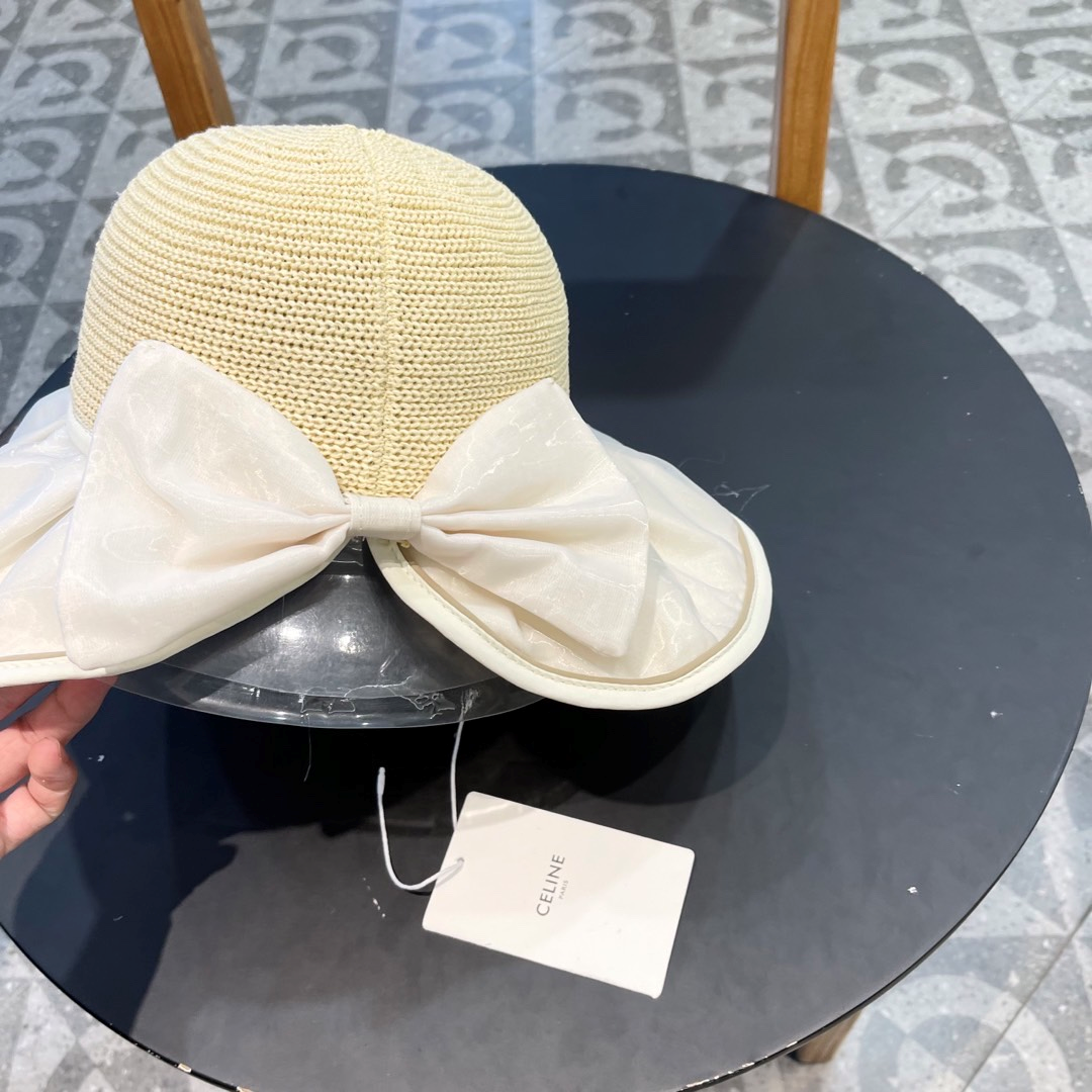 Ceiline Straw Sun Hat With Bow Split Back Sunhat (Replica)