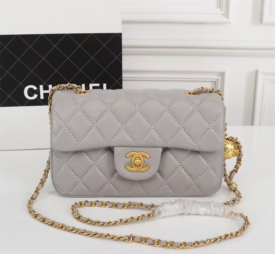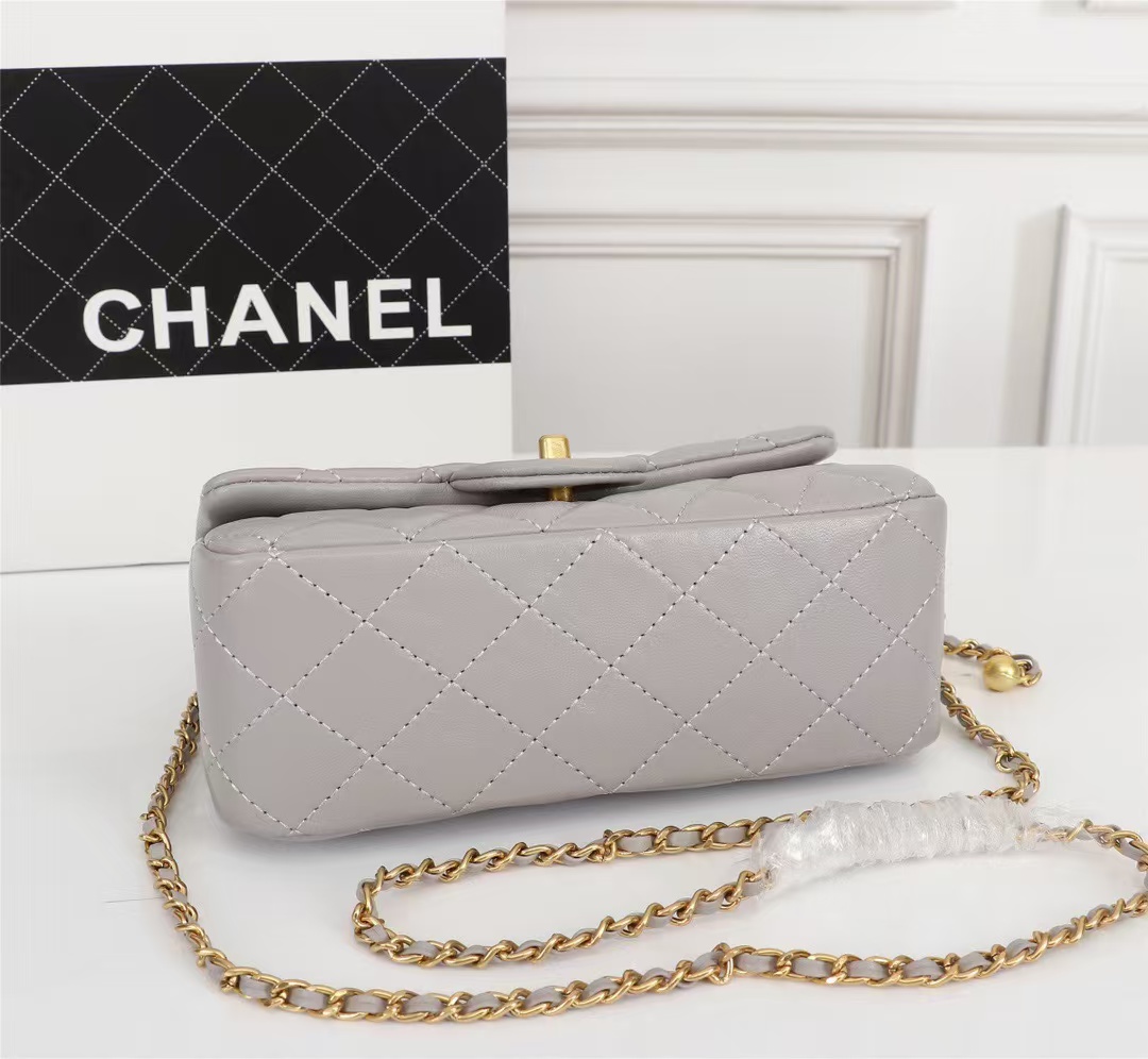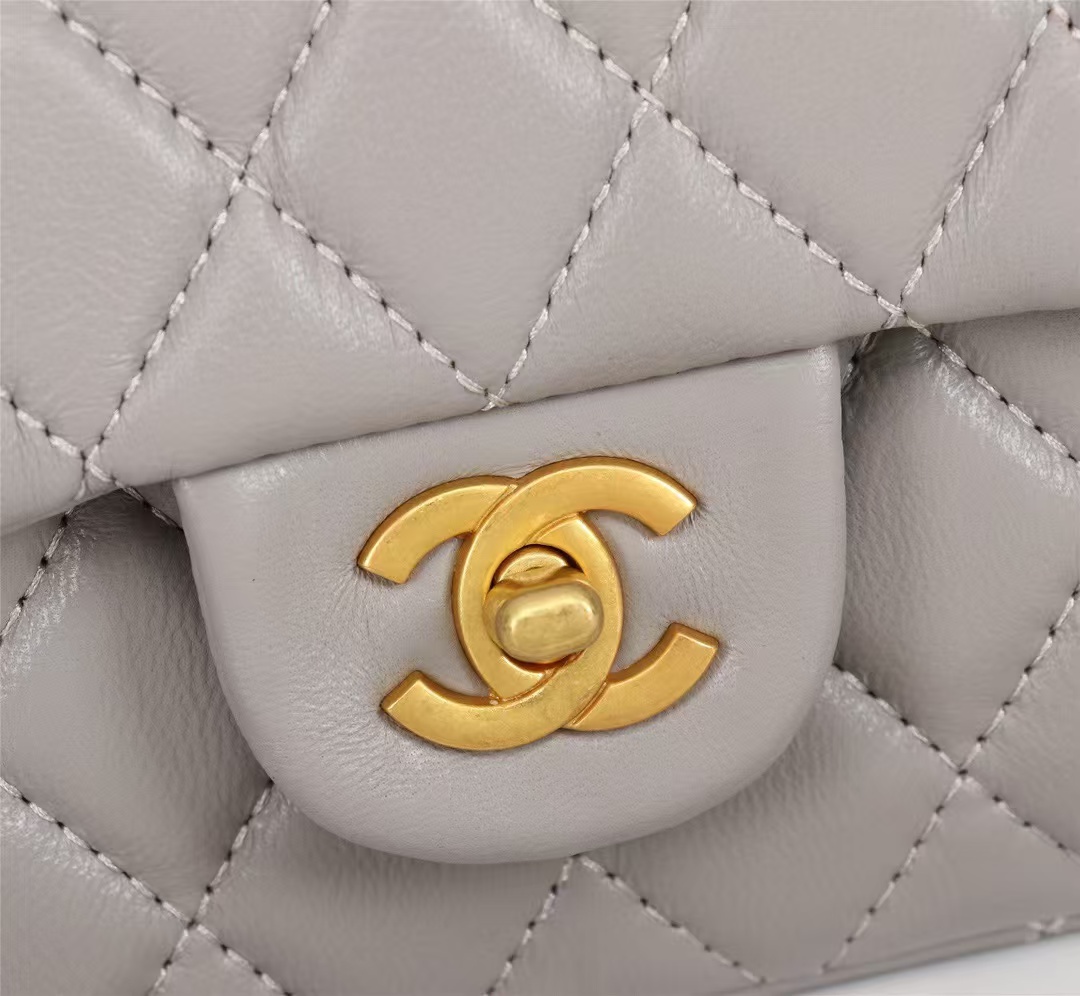 Chanel Classic Flag Bag Pearl Crush Mini Rectangular Flap Bag Light Grey Antique Gold Hardware(7A regular version)