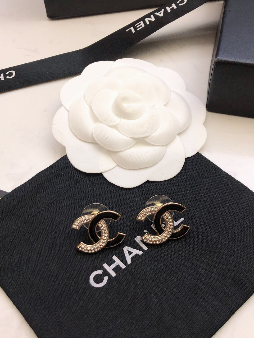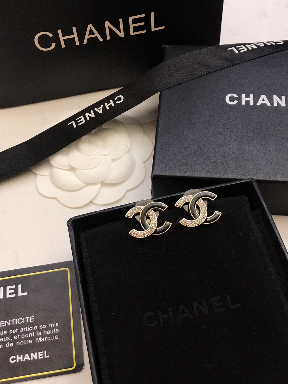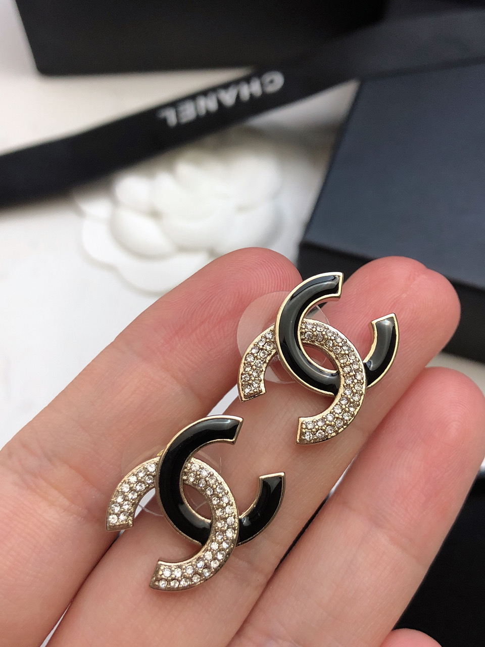 Chanel Enamel Rhinestone Double C Stud Earrings