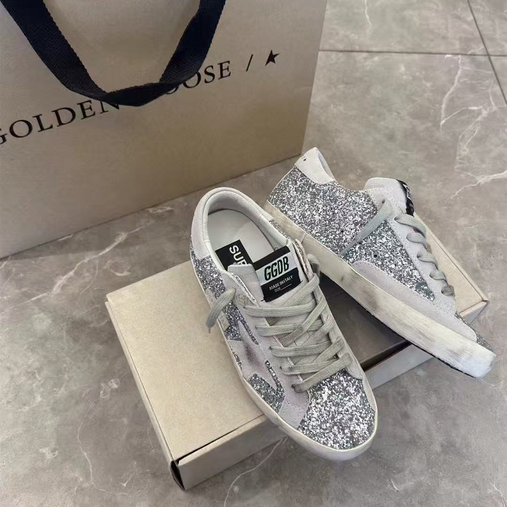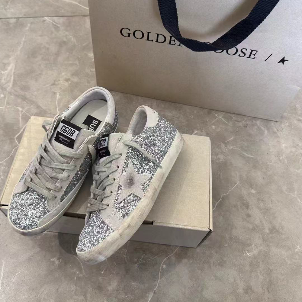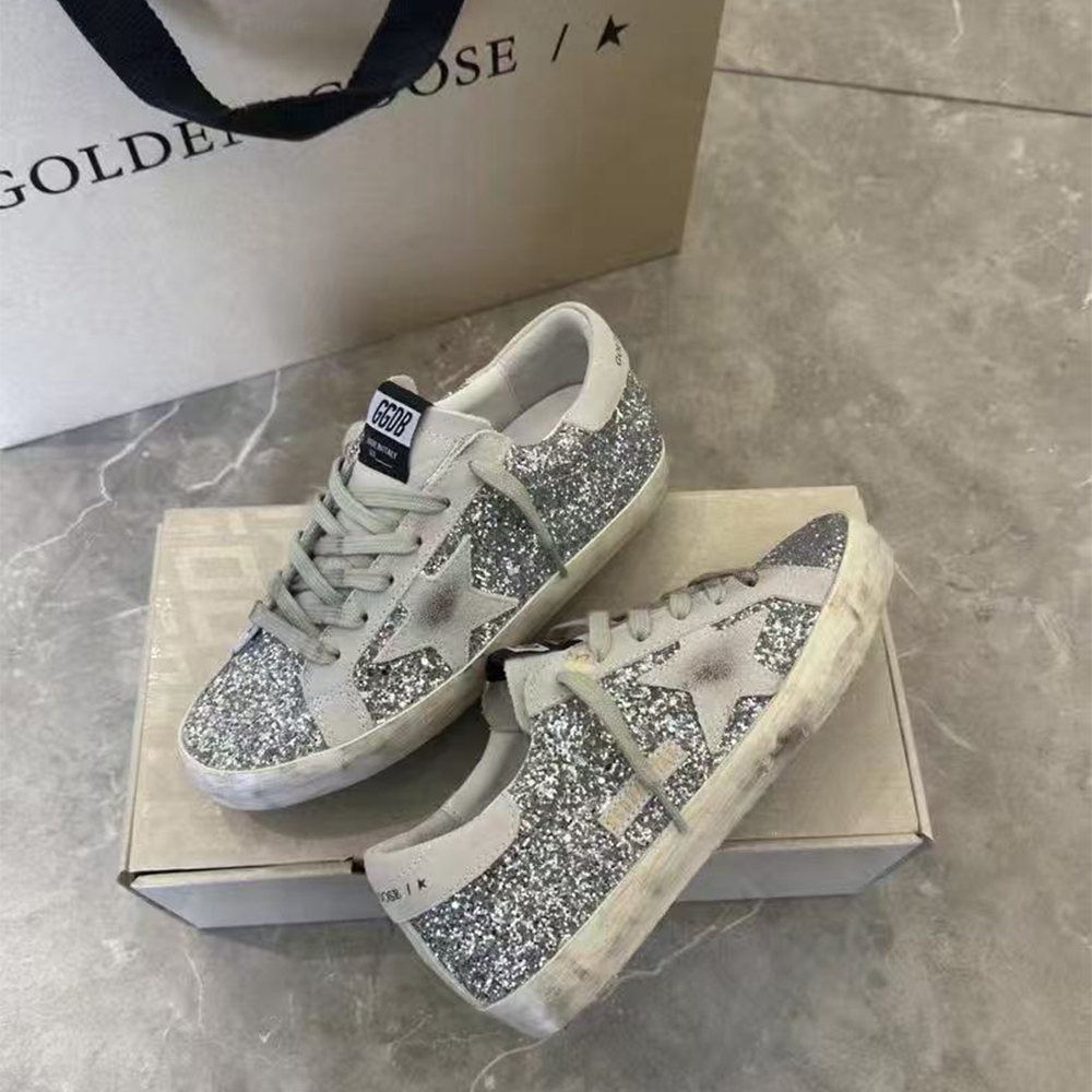Golden Goose Silver glitter Super-Star with ice grey suede star pattern (Replica)