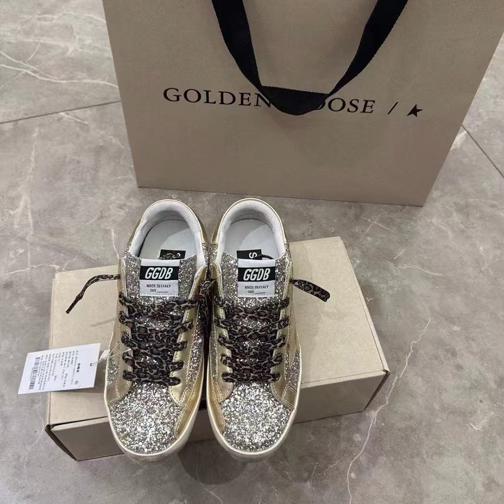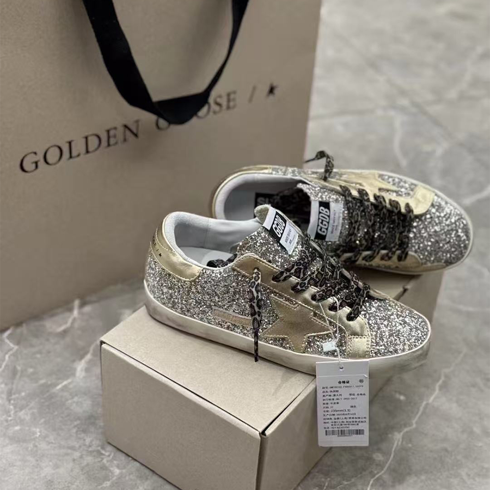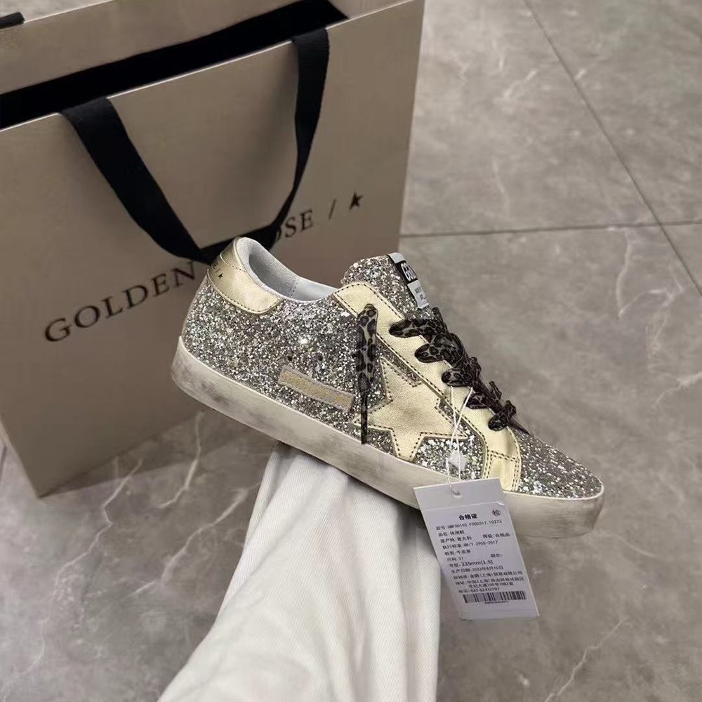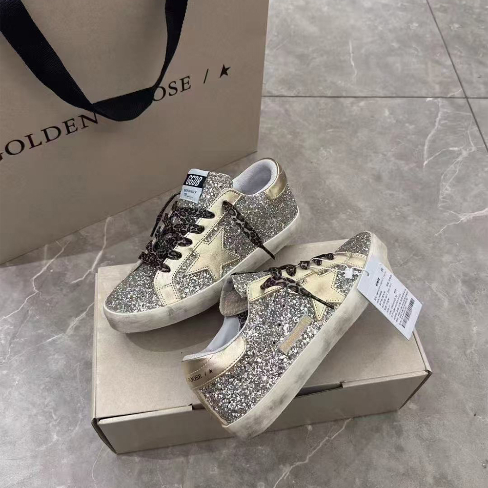 Golden Goose Silver glitter Super-Star with ice grey suede star pattern (Replica)