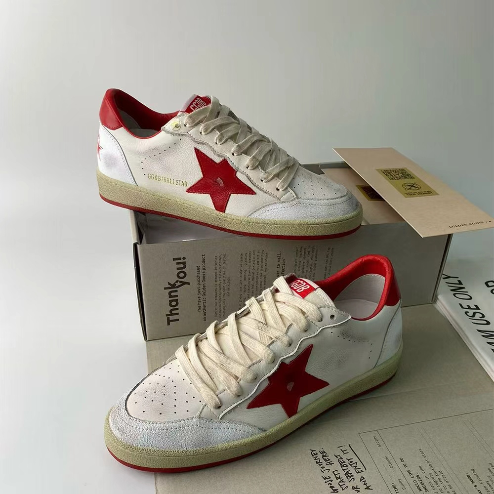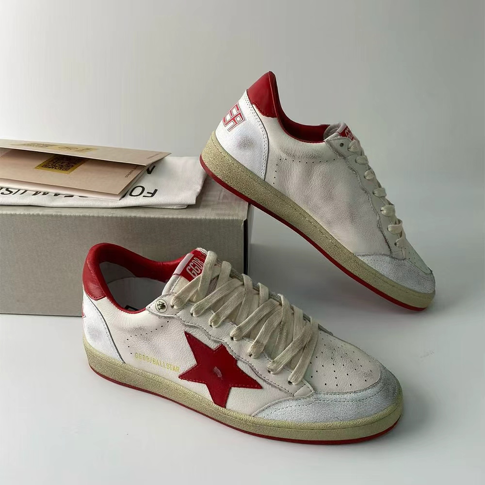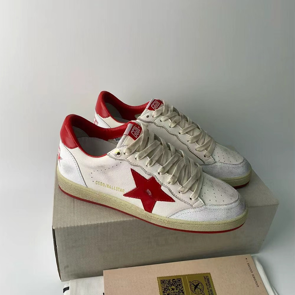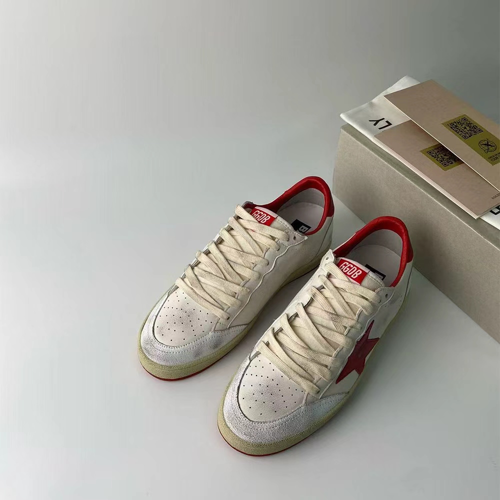 Dreaming of the Eighties. Our Ball Star sneakers have an American college vibe caught between a hoop shot and a skateboard ride. This model with a white leather upper features a red GGDB star and heel tab.