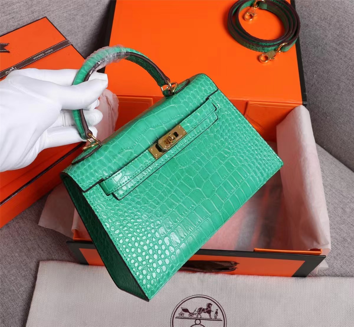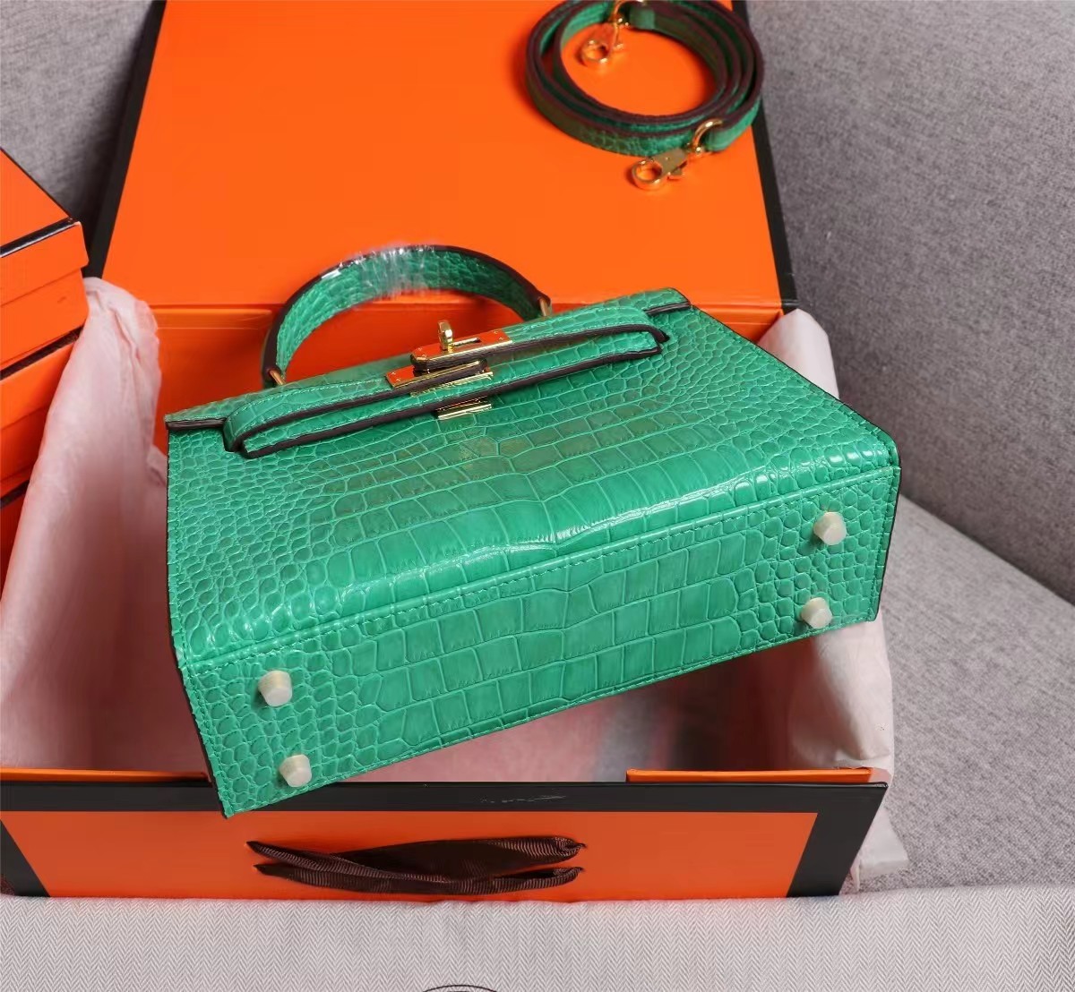 Hermès Kelly Gold Buckle Bag-Crocodile(Replica)