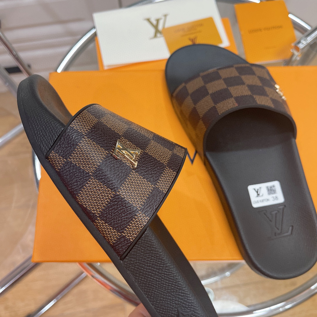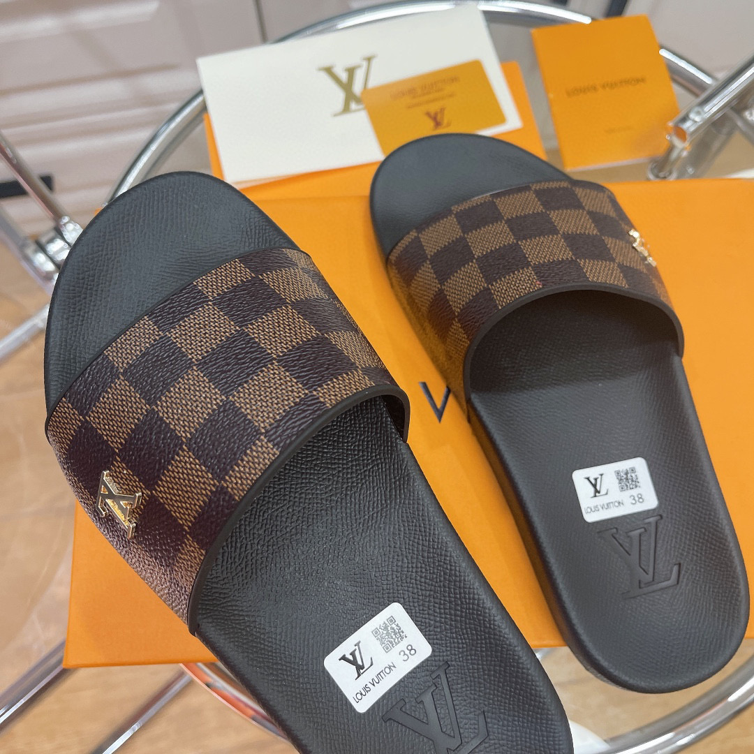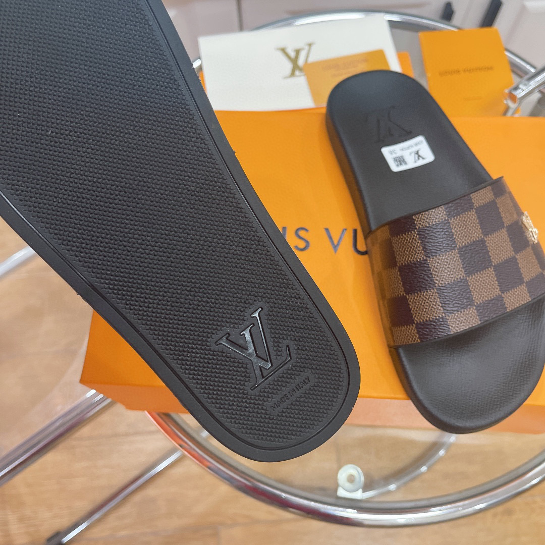 • Louis Vuitton LV Rubber Fashion Plaid Flip-flops Slide Sandal (Replica)